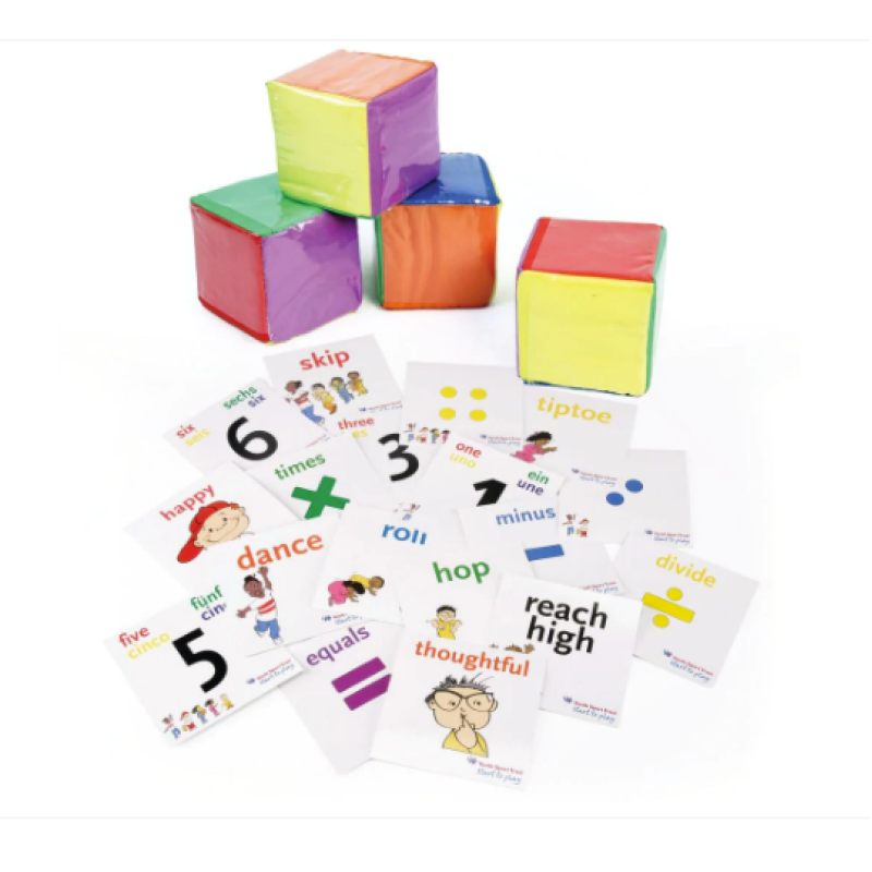 Also availble with a set of 19 double-sided cards; each set contains 1 instruction card, 6 double sided movement cards, 6 number cards backed with their dot formation and 6 emotion cards backed to simple mathematical operations. These are supplied in a bag