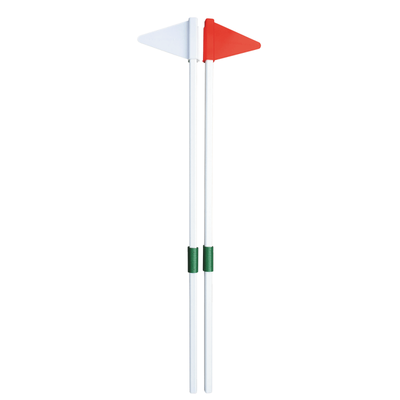 The set includes 2x 1.75m Sectional Event Poles, 2 Retainers and 2 Single Point flags (1 White and 1 Red).